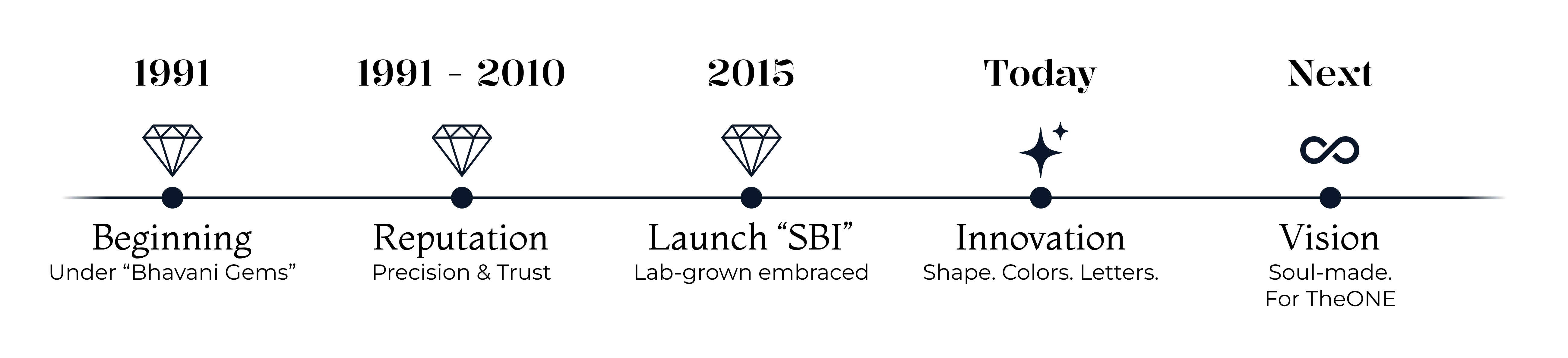 TheONE is subsidiary of Shree Bhavani Impex(Est. 1991). SBI’s heritage (34 years in diamond manufacturing & exports).
